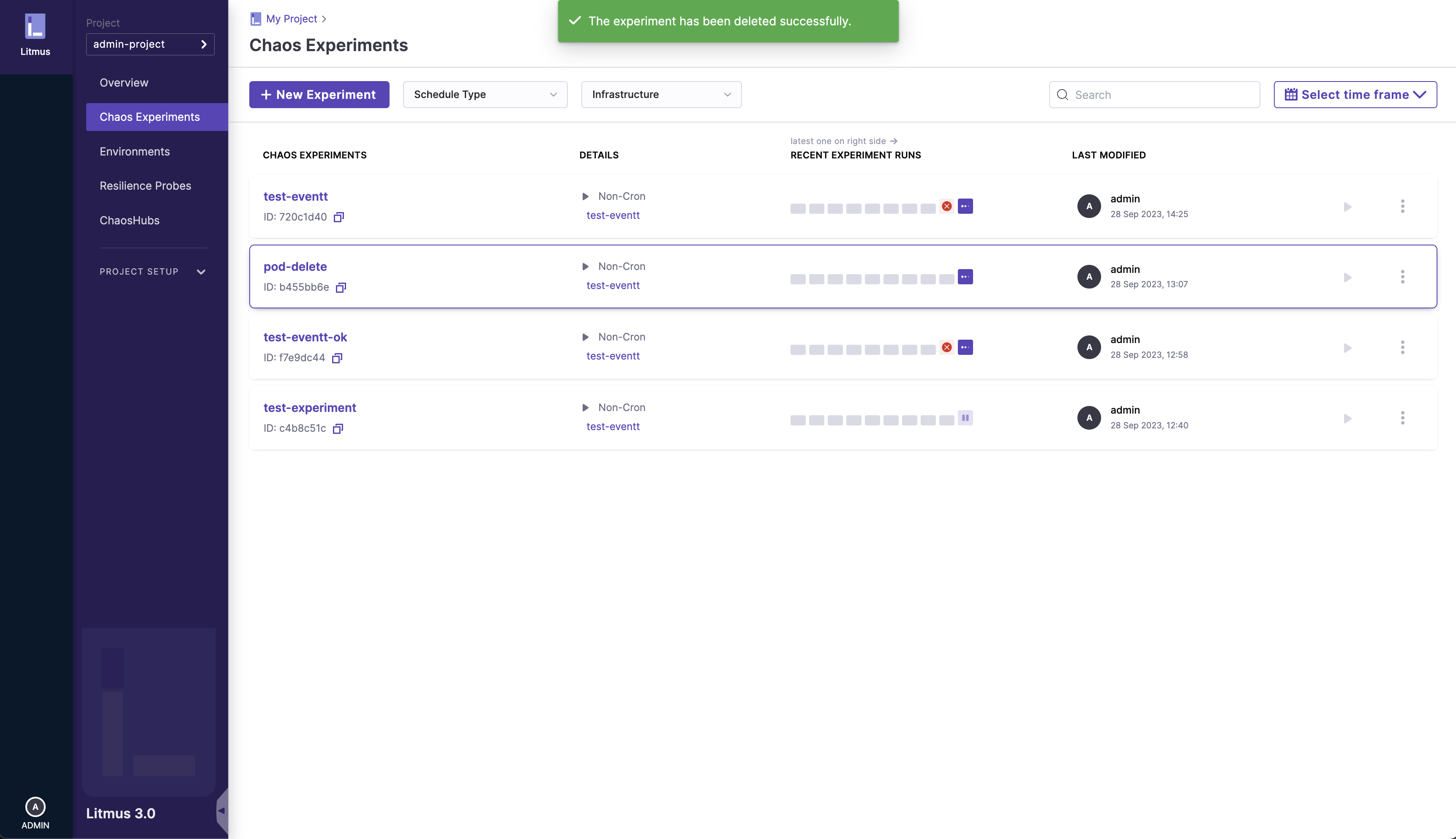 You will observe that the chaos experiment no longer appears in the list of schedules and has been removed.
